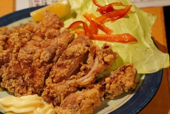 信州人のソウルフードともいえる『山賊焼き』は、長野県中信地方(塩尻市・松本市)の郷土料理です。下味をつけた鶏の一枚肉に片栗粉をまぶして揚げた、いわば大きな唐揚げのような食べ物になります。